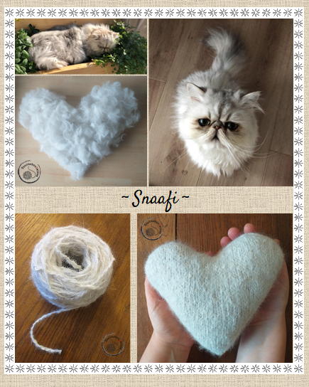 De la même façon que le sous-poil de chien, le sous-poil de chat peut aussi être filé... mais cette matière est plus aléatoire au niveau du résultat. Certains chats "feutrent" tellement rien qu'en manipulant le sous-poil récolté qu'il est presque impossible d'en faire quelque chose.