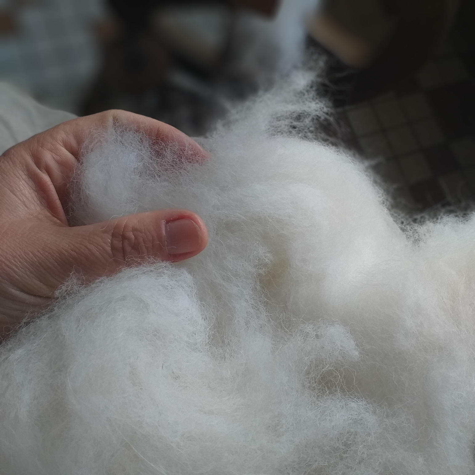 Afin d'obtenir un fil doux, vous veillerez à ôter de votre récolte toutes les impuretés : le maximum de poils, les petits brins d’herbes, les nœuds, etc. La douceur obtenue après le filage dépendra de la qualité du sous-poil récolté.